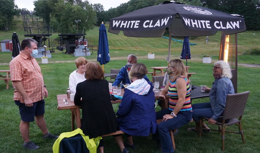 Eating up the food, the friendly conversation, the sense that I’m in a remote – and scenic – destination far from home, and warmed in the glow emitted by gas heaters placed among the many well-spaced tables all occupied at the foot of McIntyre’s ski lift, you think, “life feels good again.”
