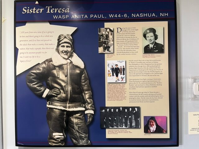 The museum pays tribute to Anita L. Paul, a Womens Air Force Service Pilot (WASP) of the World War II era. Growing up on a Hudson Farm, she’d spent time in a Maryknoll convent in New York State before Pearl Harbor. WASPs trained male pilots, flew experimental aircraft stateside, transported planes and towed airborne targets for male pilots and flak batteries. Disbanded in the fall of 1944, WASPs were originally denied all military honors, a mean and meaningful oversight as 38 of the war’s 1,074 WASPs were killed in service.
