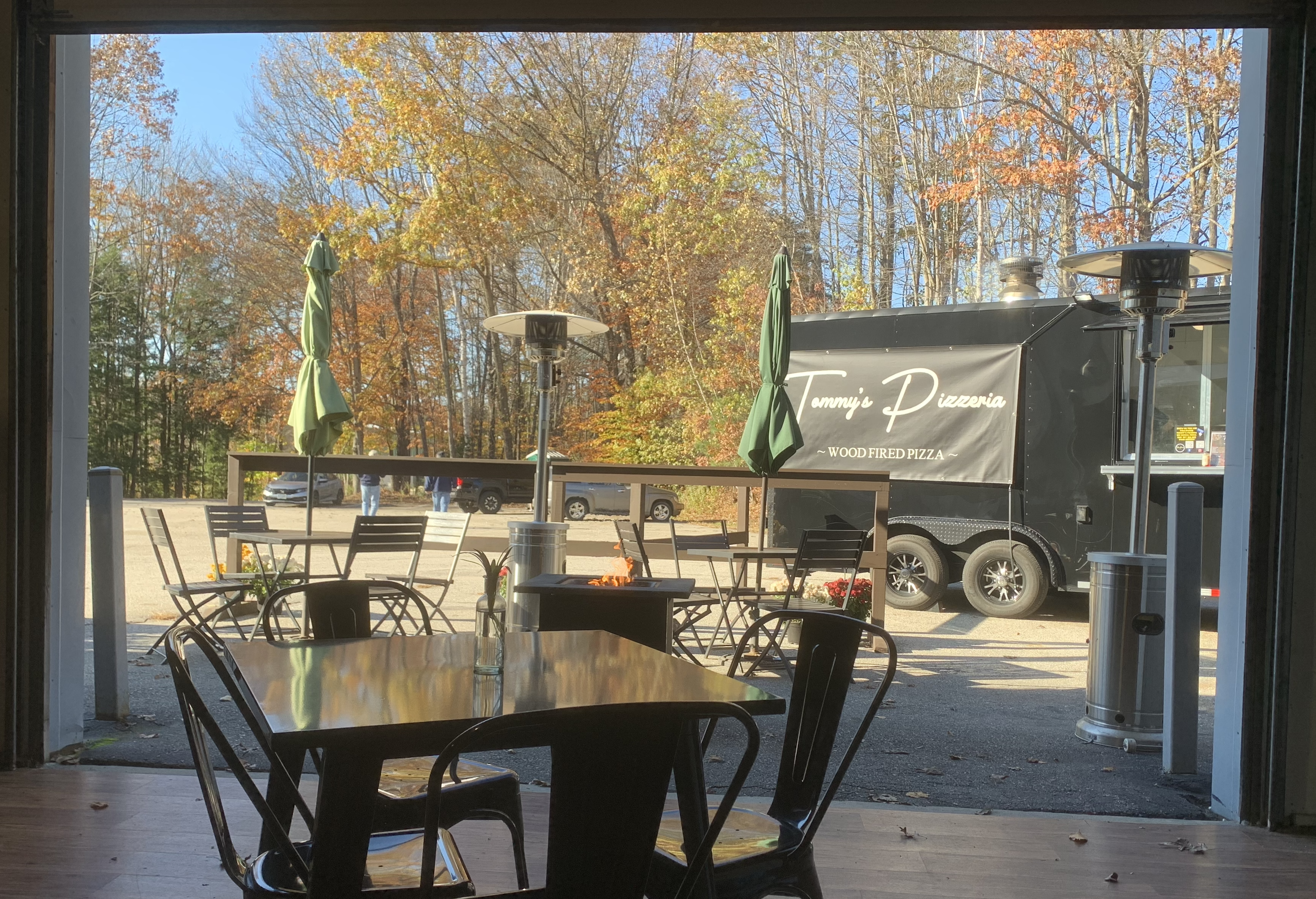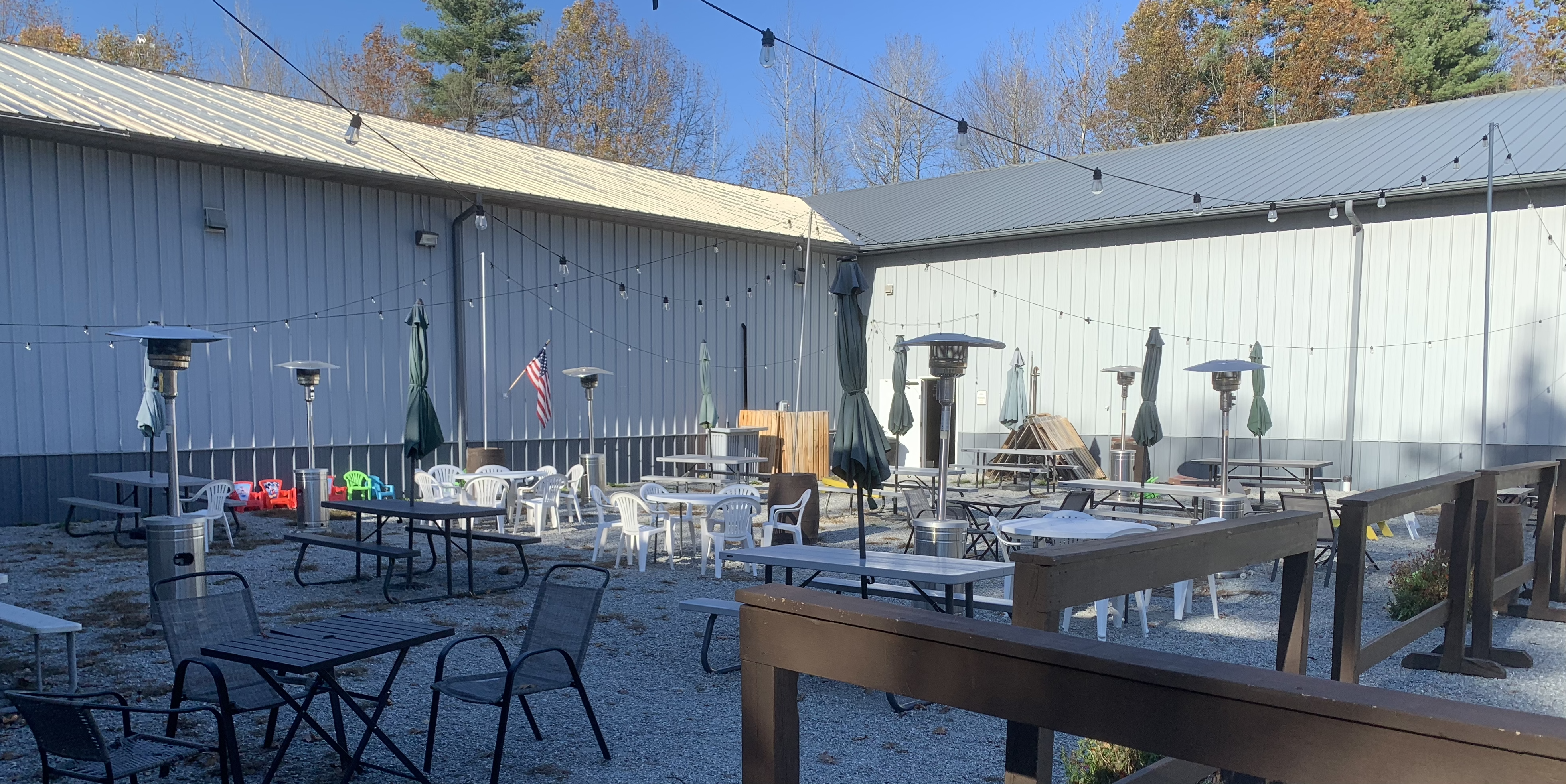 Henniker Brewing offers a friendly and welcoming space โ dog-friendly, child-friendly, food carry-in-friendly. They blur their indoor space with their outdoor space, with a roll-up garage door opening onto outdoor seating warmed by a firepit and someย tall overhead propane heaters. Out back they have a large beer garden with plenty of tables and a few sets of corn-hole. The sun was great when I was there, but they admitted that it can be a bit much in the height of summer.