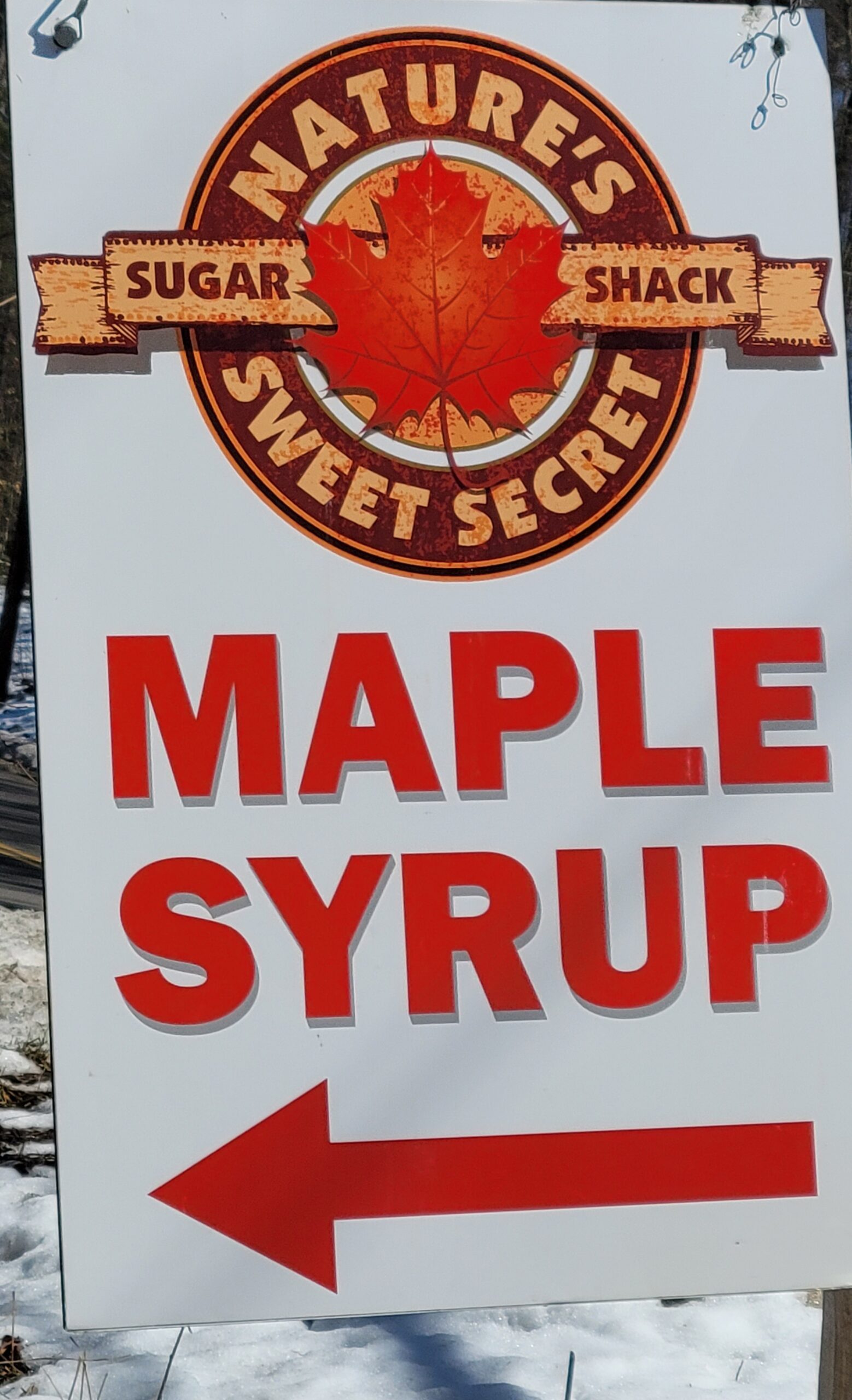 Pointing the way: Sign outside Nature’s Sweet Secret to guide maple-seekers. Photo/Alex Fleming