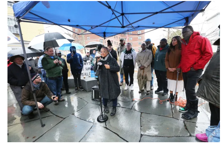 On Sunday, December 3 at 1 p.m., a demonstration in support of Mamadou Dembele, the victim of a hate crime in Portsmouth on 22 Nov., was held at the African Burial Ground Monument. It was a rainy day with several dozen supporters turning up to listen to the words of leadership address the attack on a fellow member of the community. They had inspirational messages of persistence, community, and support. They expressed their love of New Hampshire and its people and shared their pain of constantly being on guard for incidents like Mr. Dembele’s horrible attack.