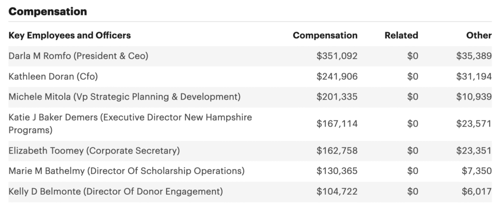 The image with this post shows CSF’s more than $1 million in executive compensation for the national office. Only $167,000 goes to the NH director.