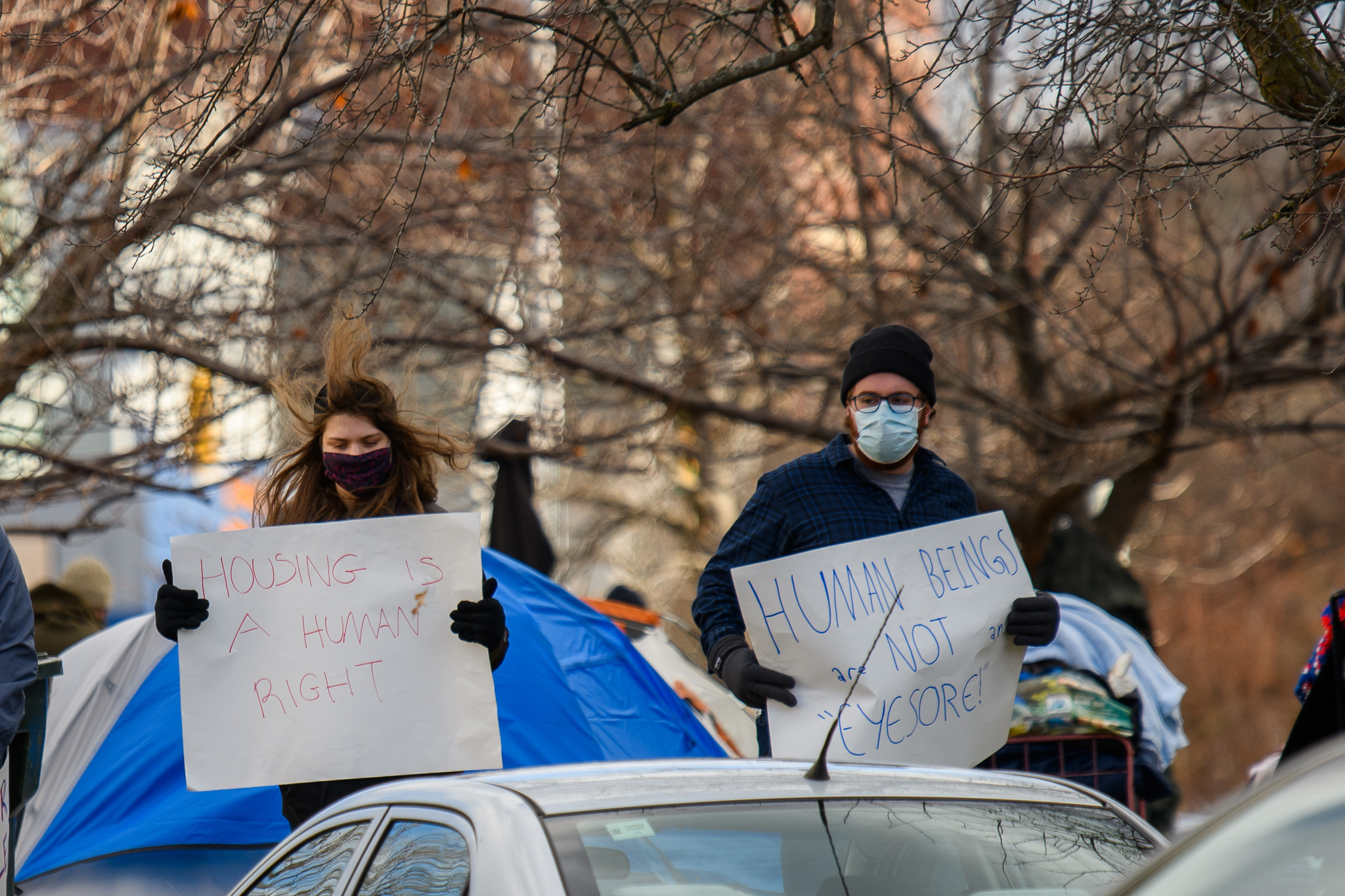 Tufts said he walked by the encampment on Monday and was surprised at the number of protestors who had come out in support of the homeless, urging the state not to remove them without a safe place for them to be relocated to.