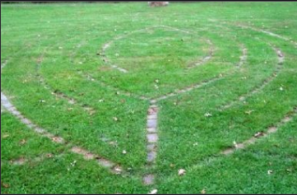 So on one trip my husband and I pulled in and I got out and walked the labyrinth, it was a classic Chartres labyrinth and took almost an hour. I’m grateful that theย Hubs was so patient as I really enjoyed the experience. So assuming that was the beginning I’m going to go from there and say that first walk led me to research labyrinths and find out more about them. I admit I used to confuse labyrinths with mazes, probably because of the David Bowie film. A maze is a deliberately confusing structure that leads you in different directions,ย many of them false leads. They’re a lot of fun and you see them all over the place in the fall made out of corn. A labyrinth is very different.