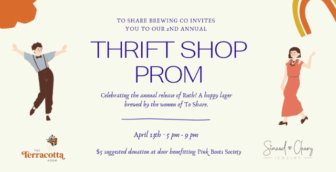 Second Annual Thrift Shop Prom, Manchester NH –ย To Share Brewing Company and the Terracota Room are hosting their second annual Thrift Shop Prom and celebrating their annual release of Ruth which is a beer brewed by the women of To Share. There will be a live DJ, Photo Booth, and more!