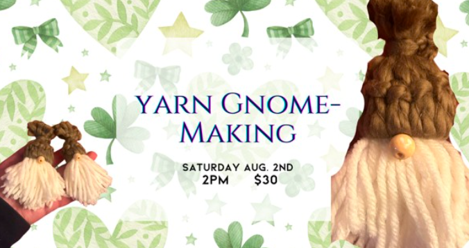 Yarn Gnome Making, Manchester NH – Manchester Craft Market is hosting a Yarn Gnome Making class this Saturday from 2 until 4PM. No experience is necessary, just be prepared to craft! Get your ticket here.