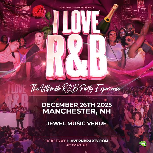 I Love R&B Party, Jewel Music Venue, Manchester, NH โ Get ready to sing, sway, and vibe all night long asย I LOVE R&Bย brings the heat across the country this fall! This isย notย your average partyโthis is a full-blown celebration of the greatest era in R&B music. From 90s throwbacks to early 2000s favorites and todayโs smoothest hits, our DJs and MCs are bringing nothing but vibes. The party kicks off on Friday, Dec. 26 at 9 pm. Get tickets here.