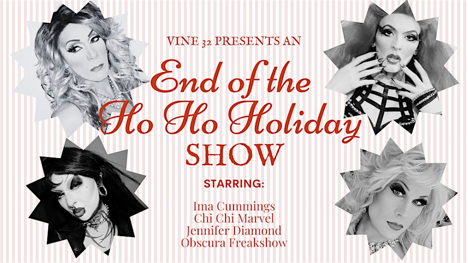 End of the Ho Ho Holiday Drag Show, Vine 32 Wine & Graze Bar, Bedford, NH โ Join us this Sunday, Dec. 28 from 8 pm – 10 pm (doors at 7 pm) for the End of the Ho Ho Holidays Drag Show โ a glitter-soaked farewell to the festive season featuring bold performances, post-holiday sass, and queens ready to sleigh one last time. Holiday looks with a twist. Fierce performances & festive chaos. Wine flowing all night. Get tickets here.