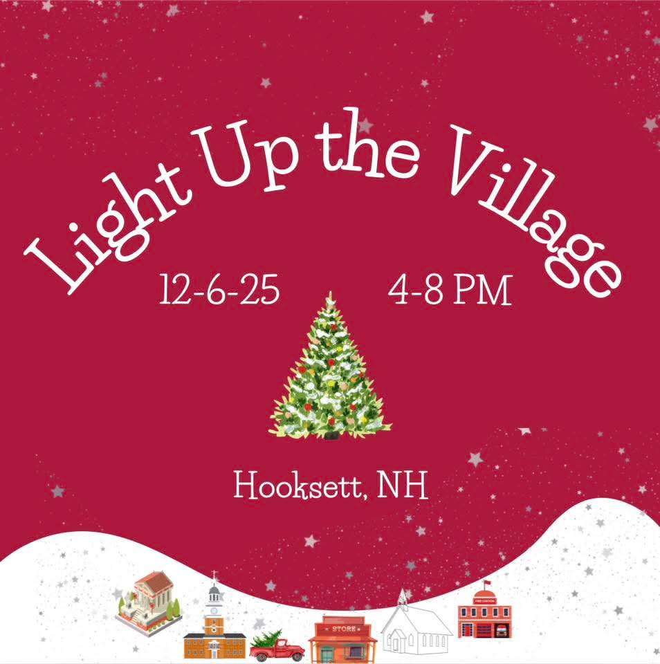 Light Up The Village, Hooksett NH โ Join us for the fourth annual Light Up The Village (LUTV) event on Saturday, Dec. 6 from 4 pm – 8 pm! Enjoy a day of joy, wonder, and holiday magic as we combine Photos with Santa, Storytime and much more one big community celebration.