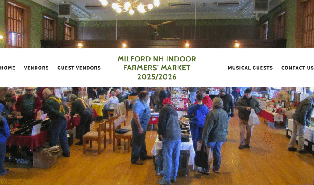 Indoor Farmers’ Market, Milford Town Hall Auditorium, Milford, NH โ We have a great indoor market lined up this year with 23+ vendors and lots of variety. We aim to provide you with a diverse selection of fresh and locally made/grown products. The next market will day place on Saturday, Dec. 6 from 10 am – 1 pm. More info here.