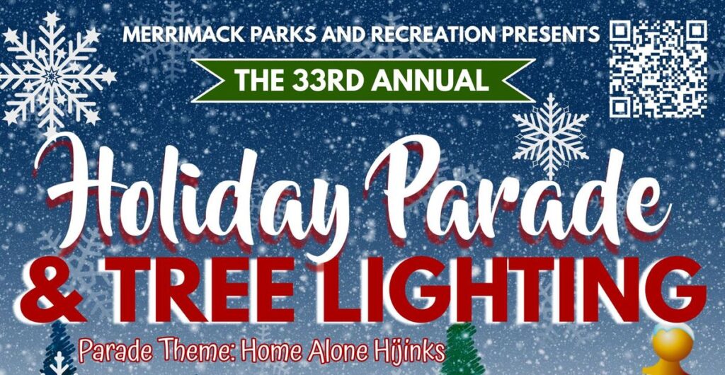 33rd Annual Holiday Parade & Tree Lighting, Abbie Griffin Park, Merrimack, NH โ Join us on Sunday, Dec. 7 from 3 pm – 4:30 pm as we kick off the official holiday season with one of Merrimackโs most beloved traditions โ the 33rd Annual Holiday Parade & Tree Lighting Celebration! This yearโs theme is โHome Alone Hijinks,โ promising floats with festive creativity, laughter, and plenty of holiday spirit. Expect mischievous moments, clever costumes, and โKevin-worthyโ holiday magic as the community comes together to celebrate! More info here.