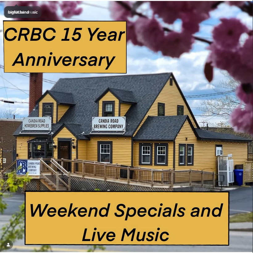 CRBC 15 Year Anniversary, Candia Road Brewing Company, Manchester, NH โ Weโre celebrating 15 years, Feb. 27 – March 1. Weโll be adding rib eye steak and cheese and Manchester style chopped cheese to the menu as our special roster. Black Pudding Rovers will be playing from 2 pm – 4 pm on Saturday while on Sunday, Bigfรผt and Sam Drouin will be playing from 2 pm – 4 pm. We also have some new swag (limited edish) flooding the shelves as we speak. If anyone can help us alleviate the problem, it would be greatly appreciated. Once again, both new regulars and old, thank you for sticking with us throughout the years. Letโs make this anniversary one for the books.