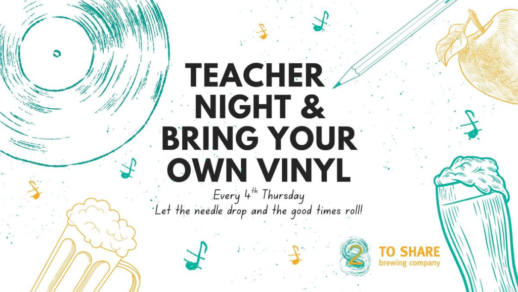 Teacher Thursdays + Bring Your Own Vinyl, To Share Brewing Company, Manchester, NH โ Schoolโs out โ class is in session at the taproom! Join us on Thursday, Feb. 26 for a laid-back Teacher & School Staff Appreciation Night, paired with Bring Your Own Vinyl for the perfect after-work unwind. Weโre opening early at 3:30 pm so teachers, aides, administrators, counselors, bus drivers, and all school staff can stop by right after the bell rings.