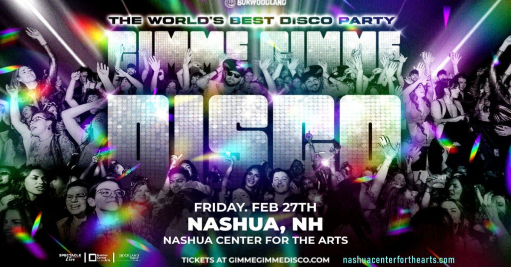 Gimme Gimme Disco, Nashua Center for the Arts, Nashua, NH โ Calling all Dancing Queens! Here we go again! If you canโt get enough ABBA then do we have a dance party for you. We are a DJ based dance party playing all your favorite ABBA hits, plus plenty of other disco hits from the 70s & 80’s like The Bee Gees, Donna Summer, & Cher (DISCO ATTIRE ENCOURAGED). So honey honey, take-a-chance and youโll be dancing all night long. Grab tickets, bring your friends, and have the best night of your life! This event will take place on Friday, Feb. 27 starting at 8 pm. Get tickets here.