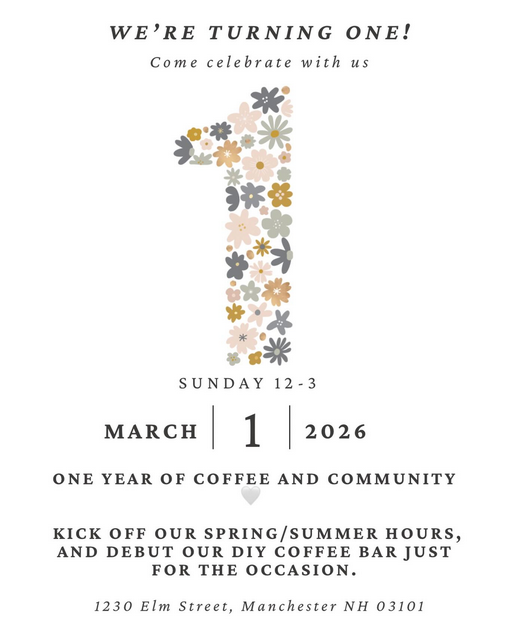 1st Anniversary Party, NXT Coffee Bar, Manchester, NH โ The month of March marks a lot of fun in the life of NXT. Come celebrate our 1 year anniversary on Sunday, March 1 from 8 am – 3 pmโฆ. thatโs right – here til THREE PM! March 1st also kicks off our new extended hours – weโll be staying open every day โtil 3. More sun and more coffee, what more could you need. Weโre looking forward to more coffee and community this next year, and are so thankful all the joy our first year has brought!