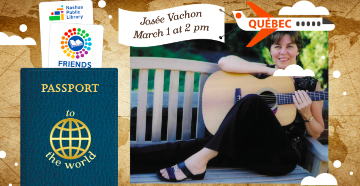 Passport to Québec, Nashua NH – Nashua Public Library is hosting another event in their Passport to the World series this Saturday at 2PM. You’ll discover the history and culture of Québec with a featured concert by acclaimed Franco-American folksinger Josée Vachon as well as have the chance to sample some traditional food. Check here for more information.
