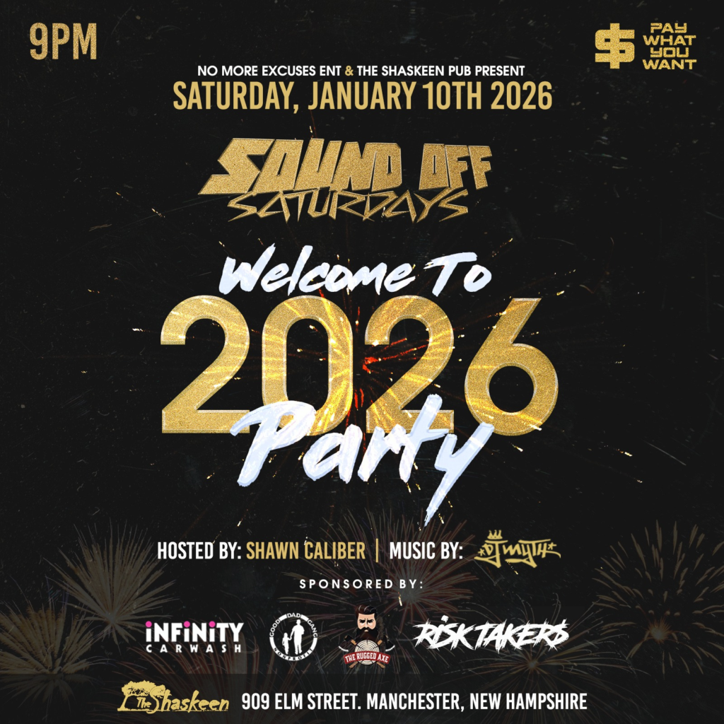 Sound Off Saturdays – Welcome to 2026 Party, The Shaskeen Pub & Restaurant, Manchester, NH โ Started off 2026 with great energy, so letโs keep it going. We are back at The Shaskeen for our next run of Sound Off parties! Pull up for the good music, great atmosphere and perfect vibes to keep the new year going. The party kicks off on Saturday, Jan. 10 at 9pm. 21+. Cover: Pay What You Want ($1+)