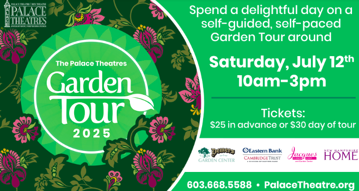 Palace Theatres Garden Tour, Manchester NH – The Palace Theatre is hosting their 6th annual Garden Tour throughout Manchester. This is a self-guided tour, self-paced tour of private and public gardens through Manchester. Registration is at 9:30AM until 12:00PM at Demers Garden Center. Get your tickets here.