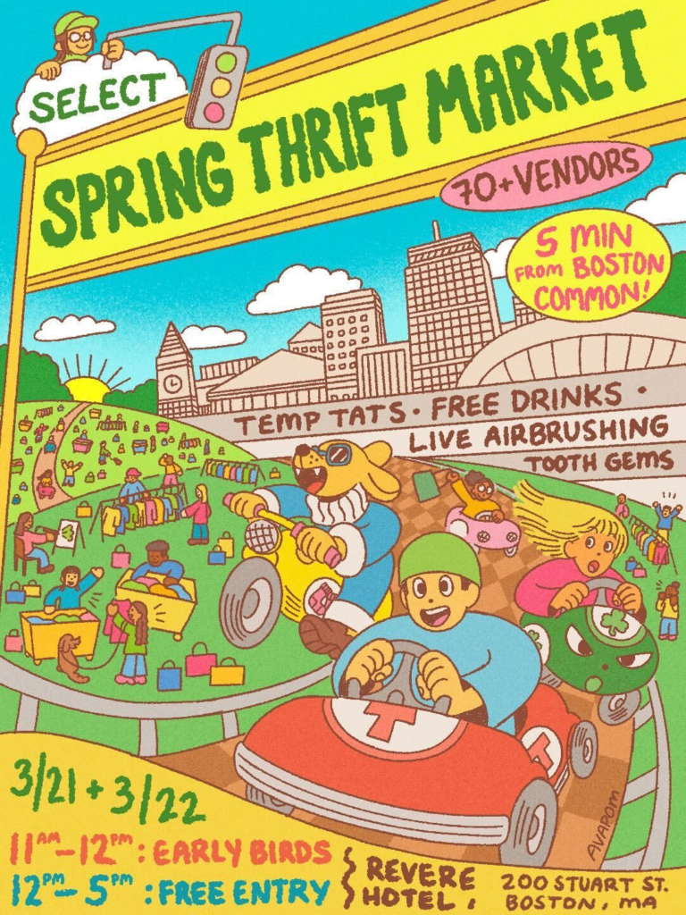 Spring Thrift Festival Market, Revere Hotel (next to the Commons), Boston, MA โ€“ BOSTON, we are hosting back to back HUGE Vintage Markets at the Revere 5 minutes from the Commons! BOSTON, we are hosting a HUGE Vintage Markets at the Revere Hotel! Over 70+ Vendors each day, 20k SQ FT of Vintage, Y2k, Jewelry, designer, $10 Piles, temp tats, tooth gems, free drinks, and so much more!! Find some new clothes, grab some food, and hang out with friends! SEE YOU ON MARCH 21ST AND 22ND. Early Bird 11-12, General Admission 12-5! @select.markets on Instagram for more details.
