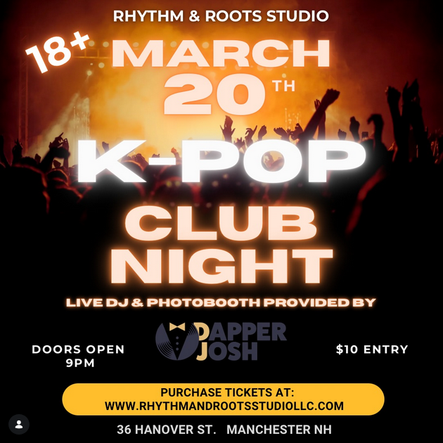 K-Pop Club Night, Rhythm & Roots Studio, Manchester, NH โ€“ Got your tickets yet? Grab em now!