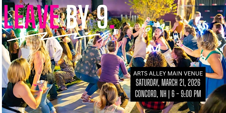 Leave by 9, The Main Venue @ Arts Alley, Concord, NH โ€“ Leave By 9 is the feel-good, scream-sing, home-by-bedtime dance party taking New Hampshire moms by storm. Leave by 9 is bringing the party early and ending it right โ€“ just for moms who want to dance, scream-sing, and be home by bedtime! Join us for an evening full of 80s-2000s bangers, unapologetic singalongs, and a dance floor packed with moms who know how to have fun without sacrificing the next day. This event will take place on Saturday, March 21, from 6 pm – 9 pm. More info here.