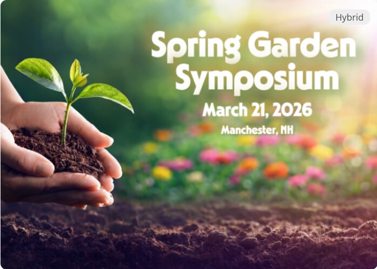 Spring Garden Symposium, SNHU – Dining Center, Manchester, NH โ€“ The annual Spring Garden Symposium, sponsored by the UNH Extension Master Gardeners, offers workshops, speakers, a book sale, silent auction and networking with other gardeners. A Premier gardening event Brought to you by UNH Extension Master Gardeners. ALL GARDENERS ARE WELCOME! This event will take place on Saturday, March 21 from 8:30 am – 4:30 pm. More info here.
