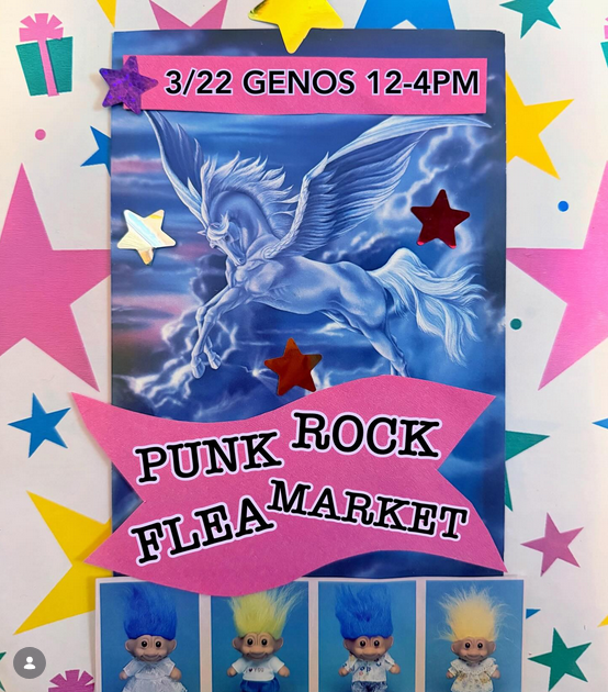 Punk Rock Flea Market, Geno’s Rock Club, Portland, ME โ€“ The next Punk Rock Flea is Sunday, March 22 from 12 pm – 4 pm at Geno’s Rock Club in Portland. Entry fee is based on a pay what you can, suggested $5, it’s all ages but you have to be 21 to drink, of course.