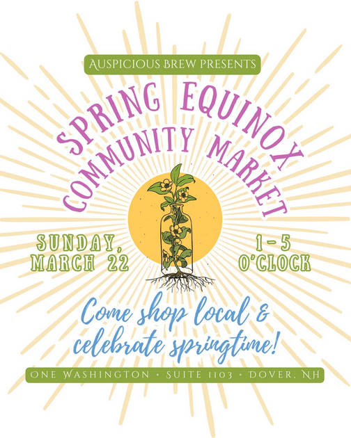 Spring Equinox Community Market, Auspicious Brew, Dover, NH โ€“ Join us on Sunday, March 22 from 1 pm – 5 pm for our Spring Equinox Market, featuring AMAZING local artists & makers! Plus โ€” tarot & palm readings by @jezmina.vonthiele and flash tattoos by @maachli.pokes โ€ฆ first come, first served! We canโ€™t wait to celebrate springtime with you! (Yes, YOU!)