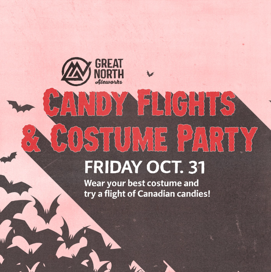 Candy Flights & Costume Party, Great North Aleworks, Manchester, NH โ We can’t miss the opportunity of a Halloween Party when it falls on a Friday! So…โ Suit up in your costume, and head on over to the Tasting Room on Friday, Oct. 31 from 3-7 pm!โ Get a Candy flight! Rob was in Canada recently, and brought back a haul of Halloween treats…Mars bars, Crispy Crunch, Wunderbar, Caramilk, Aero, Coffee Crisp, Oh Henry!, Smarties (not what you think Smarties are), and Rockets (these are what you think Smarties are).โ If you haven’t already, check out the When Dinosaurs Attack vending machine for some fun 3D printed Halloween themed collectables!