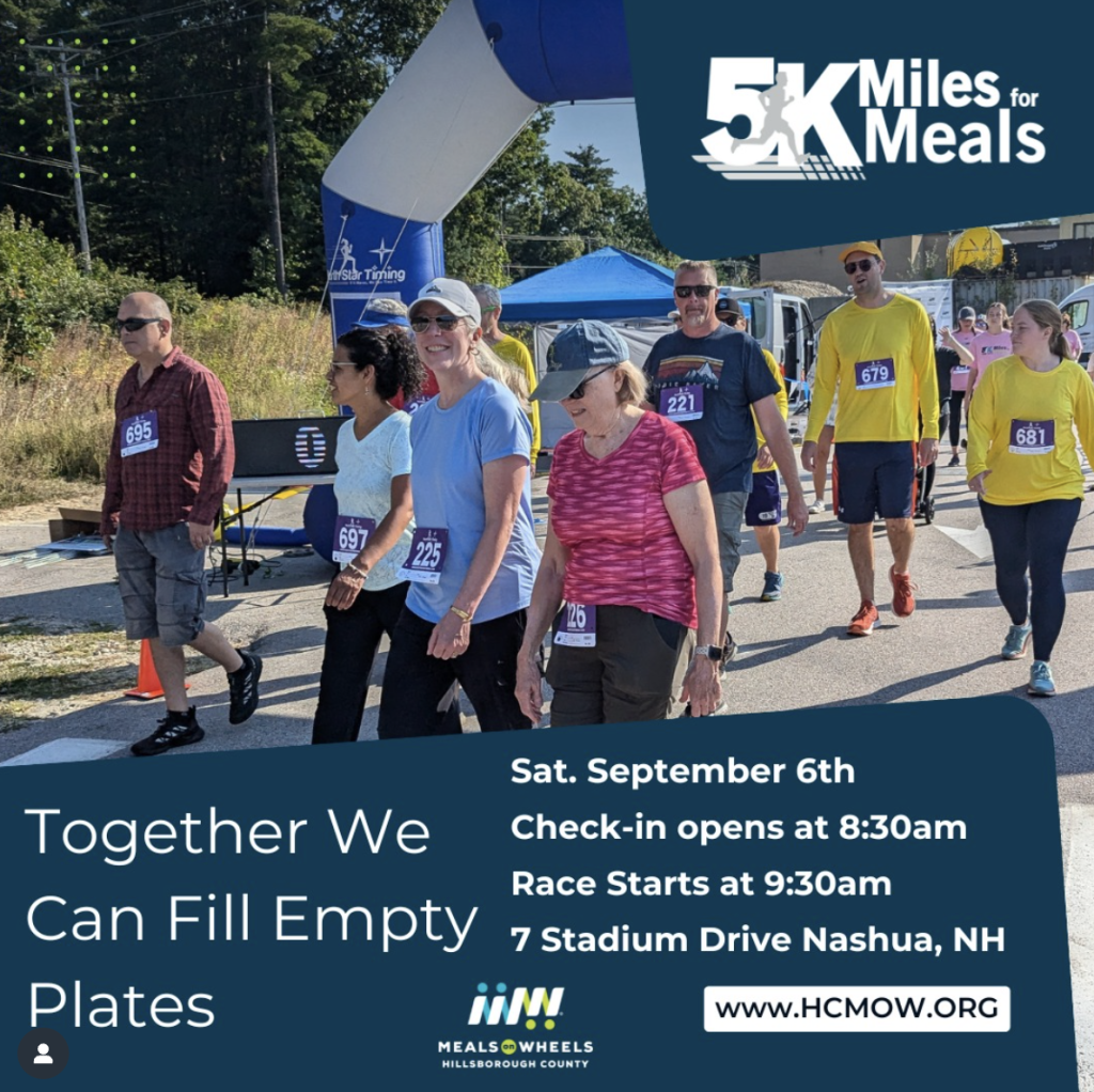 5K Miles for Meals, Nashua, NH – We are excited to welcome you to the 6th Annual 5K Run/Walk for Meals on Wheels of Hillsborough County! It will be at Mine Falls Park, a fantastic venue which welcomes runners and walkers alike! The trails are amazing and offer a wonderful 5K route as well as beautiful 3K walking trails so that walkers will enjoy this day just as much. Details here.