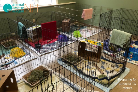 Animal Rescue League of NH prepares for arrival of rabbits from Texas.