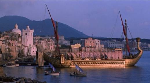 However, there is another scene …THE scene, the unforgettable scene of Cleopatra’s entrance to Rome. Even if you don’t watch the entire film, this epic display in particular, it’s worth seeing for its sheer opulence. Its original footage was scrapped due to a temperamental cameraman who was convinced the position of the sun during the current season did not allow for the proper composition.