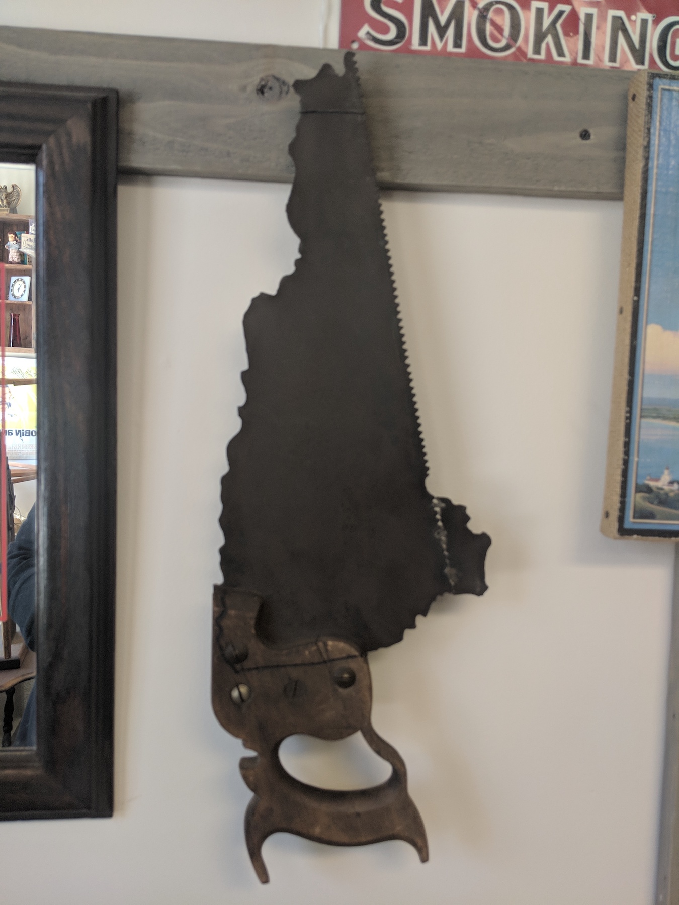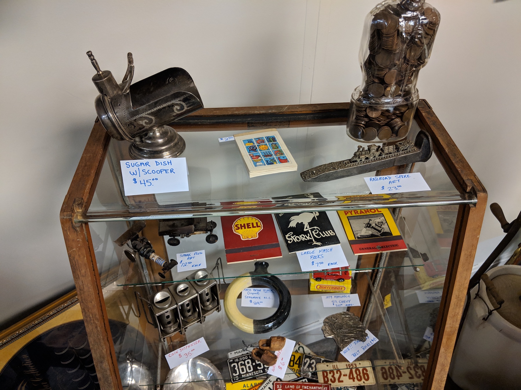 Step inside and your eye will have trouble figuring out where to focus first – it could be caught by any number of curiosities – from an old saw in the shape of New Hampshire hanging on the wall, vintage toys, tea cups or old vinyl 45s, to hand-crafted conversation pieces – like a bottler-opener featuring an old NH license plate. There is also a coin case in the back, the shop’s bread-and-butter, a throw-back to Josh’s family heritage in the buy, sell, trade business.