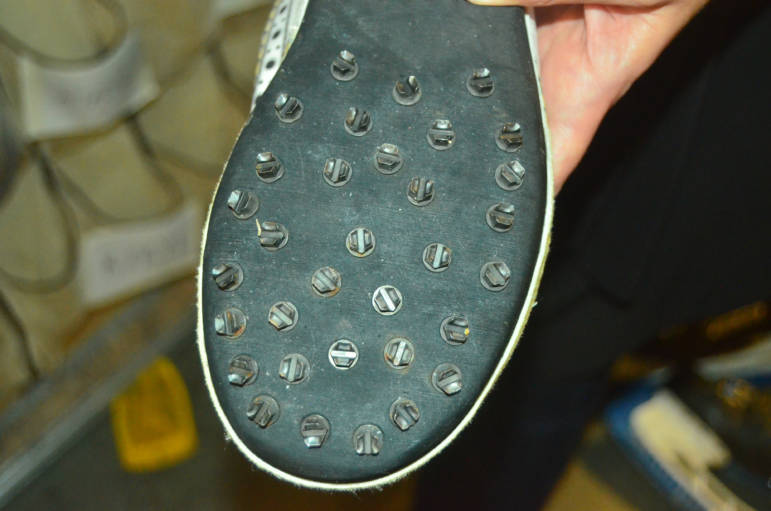The unique synthesis of acrobatics and skating also requires unique equipment as well, as specialized shoes worn by some of the performers with crampons or even screws that allow additional traction or support during various stunts.