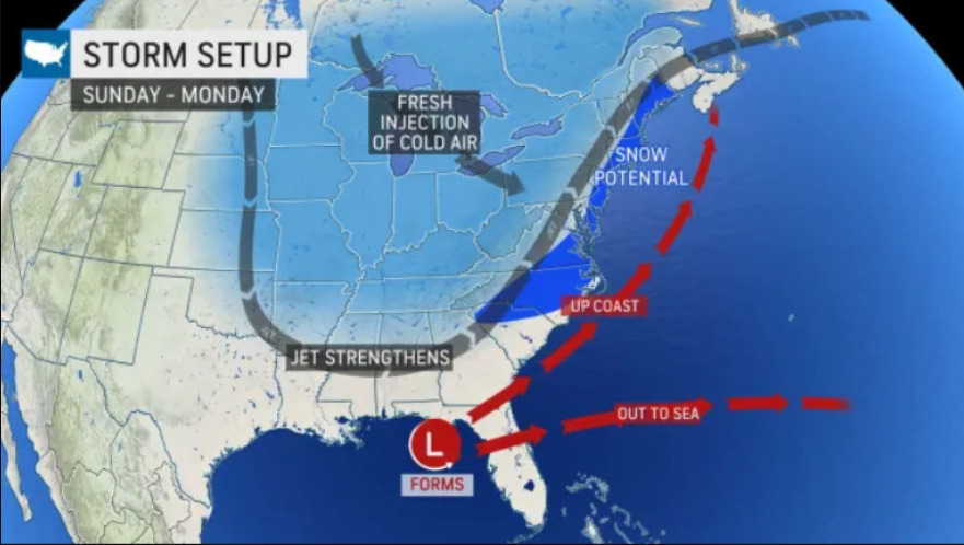 Monitoring a potential East Coast Valentineโs Day snowstorm. Depending on the trac, could be light to moderate snow.