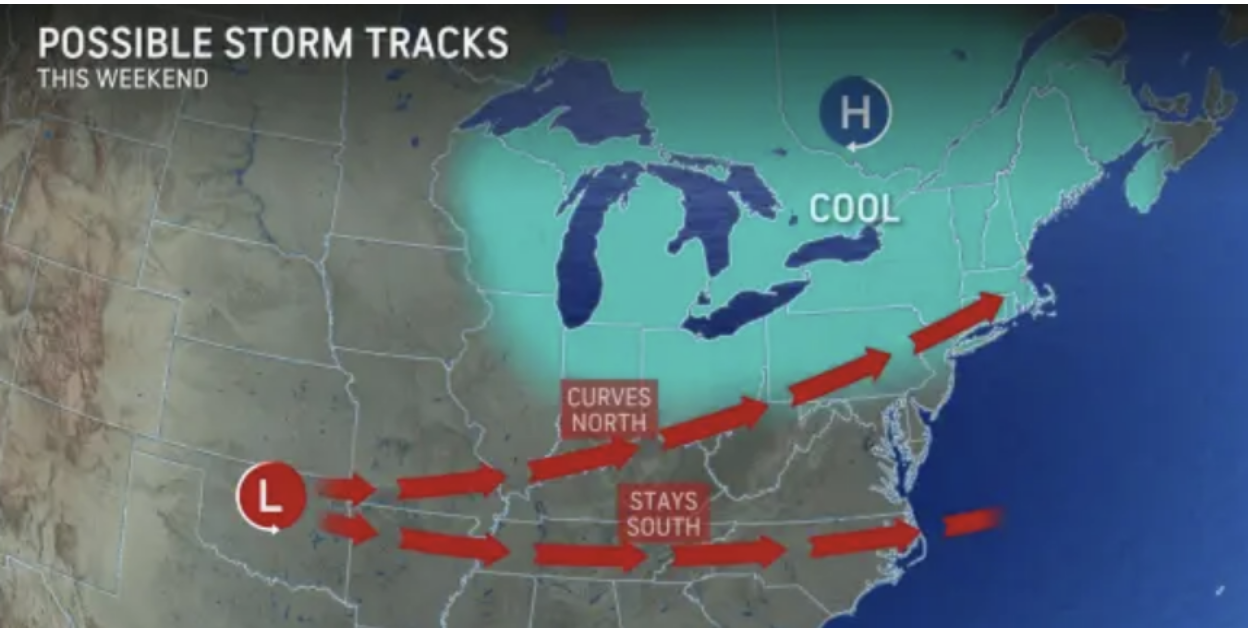 The chance of snow is increasing from late Saturday night into Sunday. The current track is curving north which means we’reย likely to see heavier amounts of snow (6-12″).