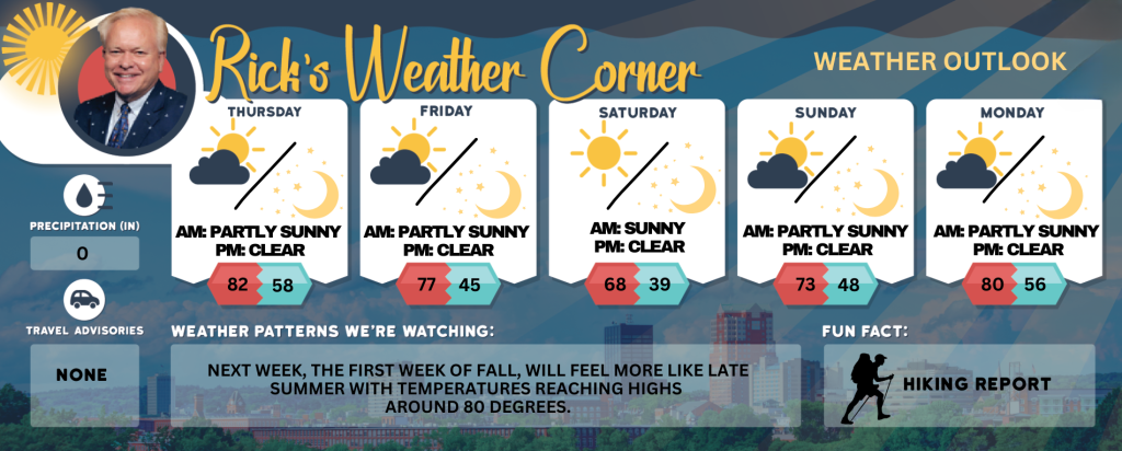 Next week, the first week of fall, will feel more like late summer with temperatures reaching highs around 80 degrees.