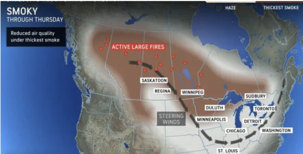 Dryer weather is anticipated over the next two days, accompanied by westerly winds. These conditions may bring back haze from Canadian wildfires across New Hampshire. As of June 4, Canadian government statistics indicated that nearly 6 million acres of forest had been burned by wildfires, mainly in the central region of the country. By June 7, there were over 200 active fires ongoing, resulting in significant smoke & haze throughout New England.