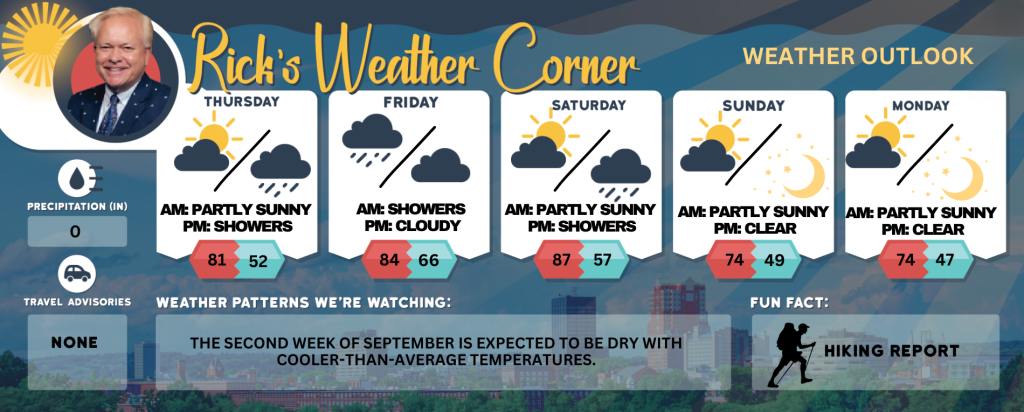 The second week of September is expected to be dry with cooler-than-average temperatures.