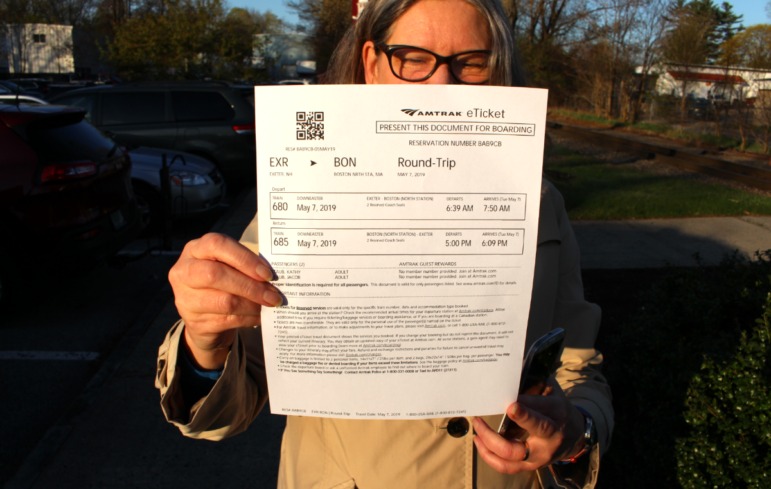 I bought a round trip ticket for $38 online for the 680 train, scheduled to leave Exeter at 6:39 a.m. and arrive North Station in Boston at 7:50 a.m. Business class tickets would have been $53. People who make frequent trips can buy discount tickets. A six-ride ticket that lasts a year costs $86, a 10-ride ticket that lasts 45 days is $137, and a monthly commuter pass is $319. If you donโt get your tickets online, you can purchase them at the kiosk at Gerryโs Variety Store.