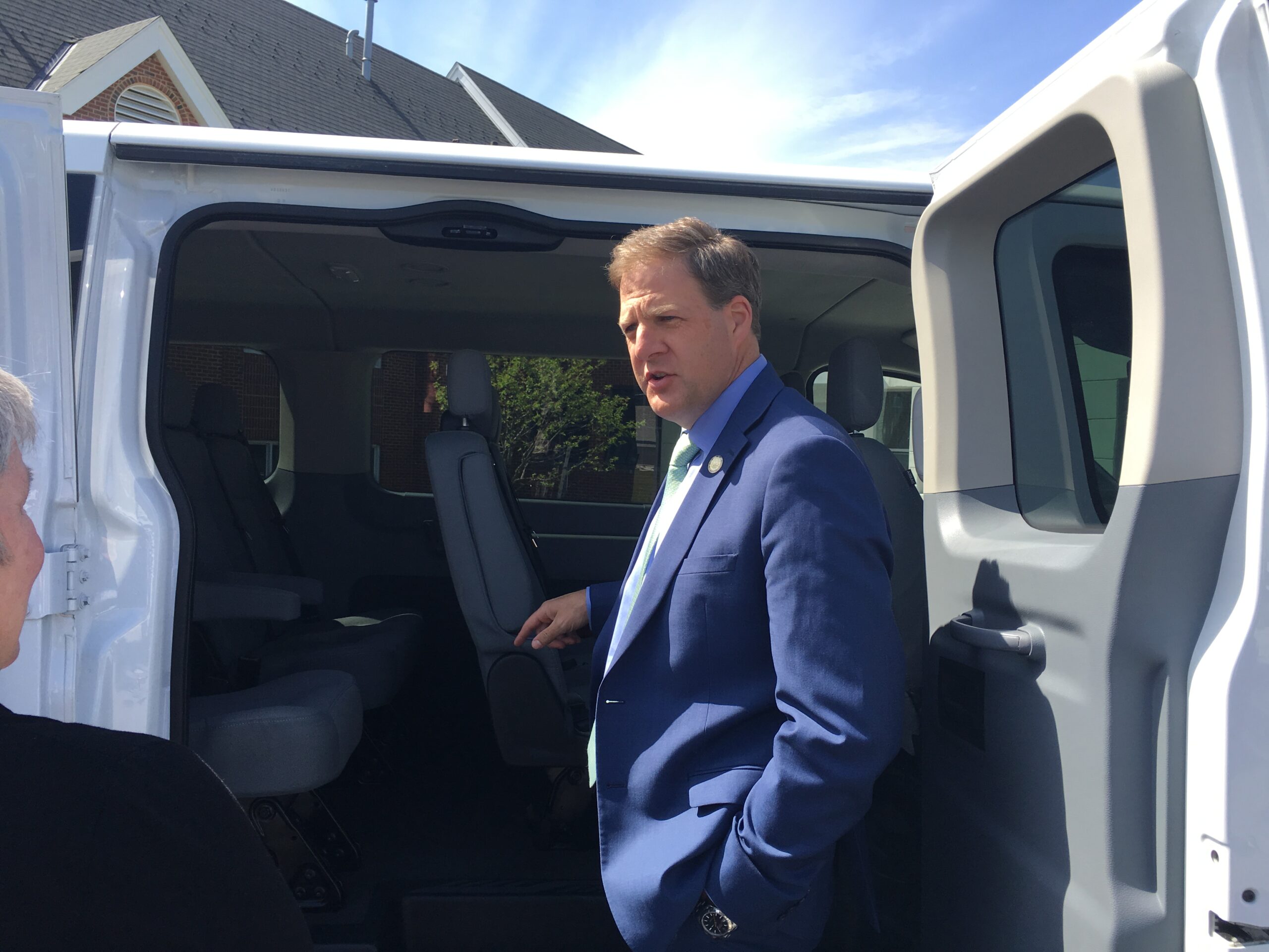 On Thursday, May 9, Gov. Chris Sununu, Granite Pathways staff and others gathered at the center to check out the 12-passenger 2018 Ford Transit 350 that was purchased and for the obligatory photos with an oversized check.