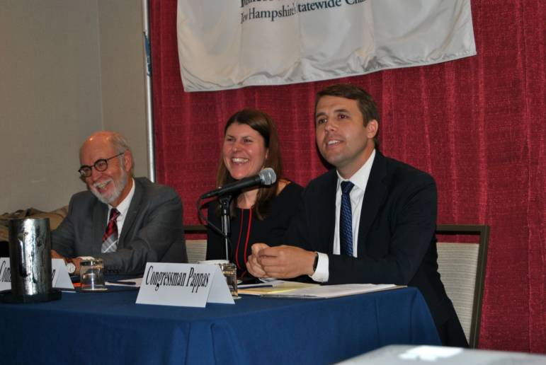 Panelists for the BIA NH forum on infrastructure, from left, NH Sen. David Watters, D-Dover, NH DOT Commissioner Victoria Sheehan and U.S. Congressman Chris Pappas, D-NH. Courtesy Photo