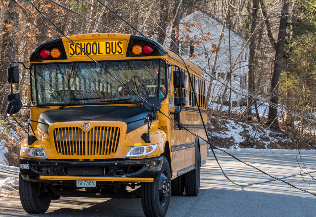 Earlier that morning, at about 8:20 a.m., a tree came down at King John Drive in Londonderry, pulling down power lines in the process just as a school bus was travelling down the roadway, according to Capt. Patrick Cheetham of the Londonderry Police Department.