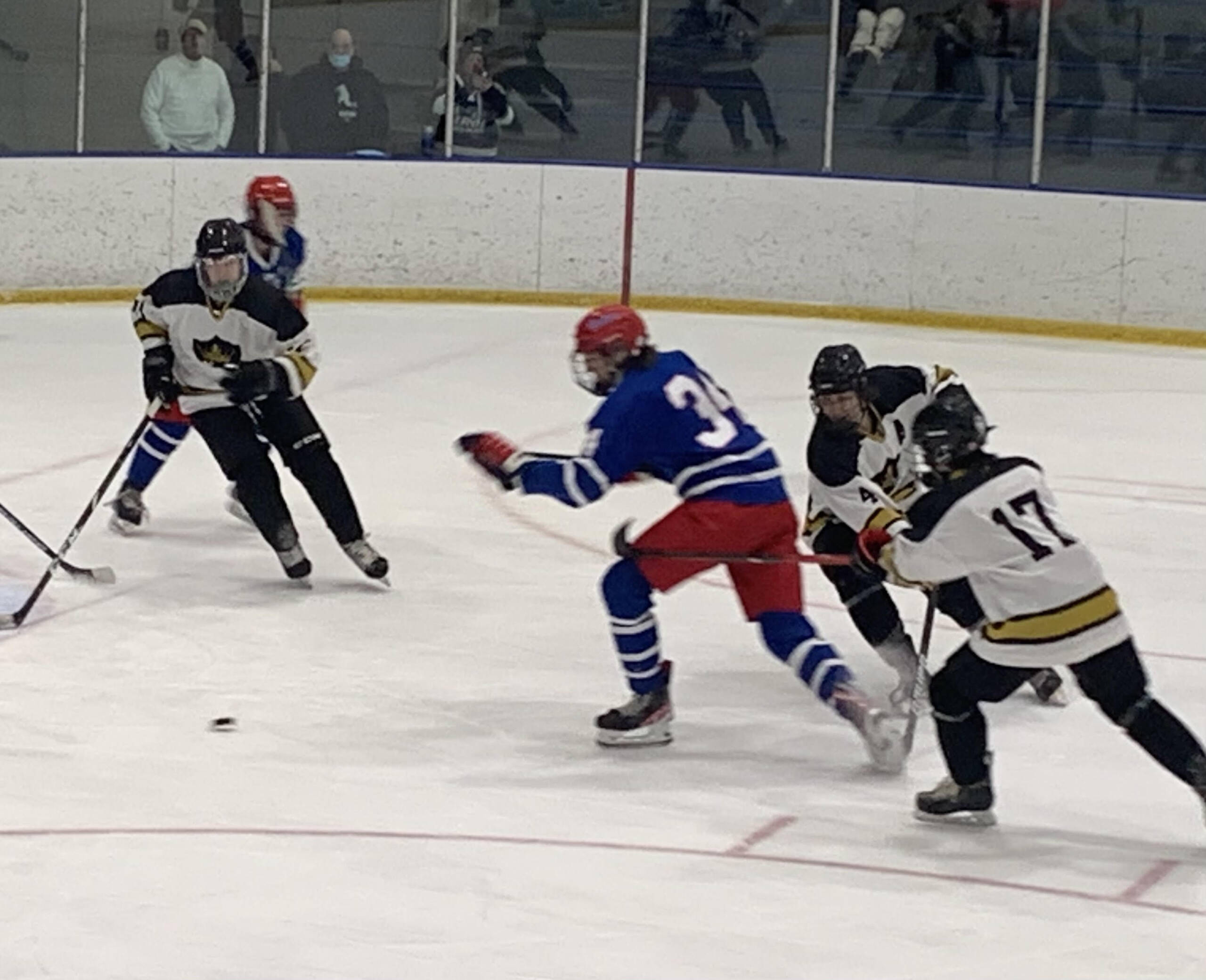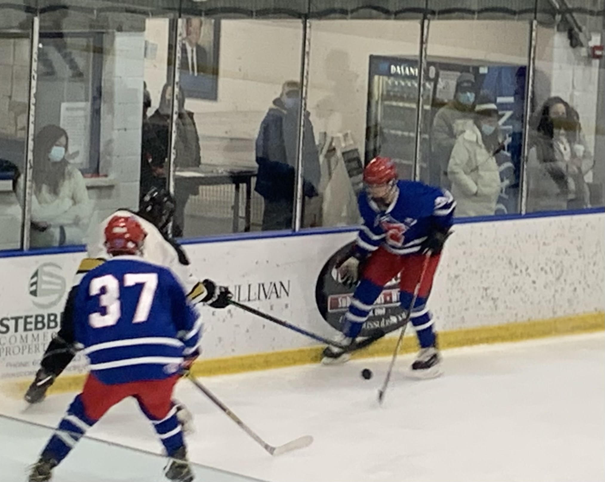 Canny got Trinity on the board just 2:05 into the came, taking advantage of a Manchester miscue. Kings’ senior defenseman Aiden Kelley tried to start a breakout by cutting in front of his own net. Canny was in the zone forechecking and, in one motion, poked the puck off Kelley’s stick and past a surprised Manchester goalie Landon Wilson.