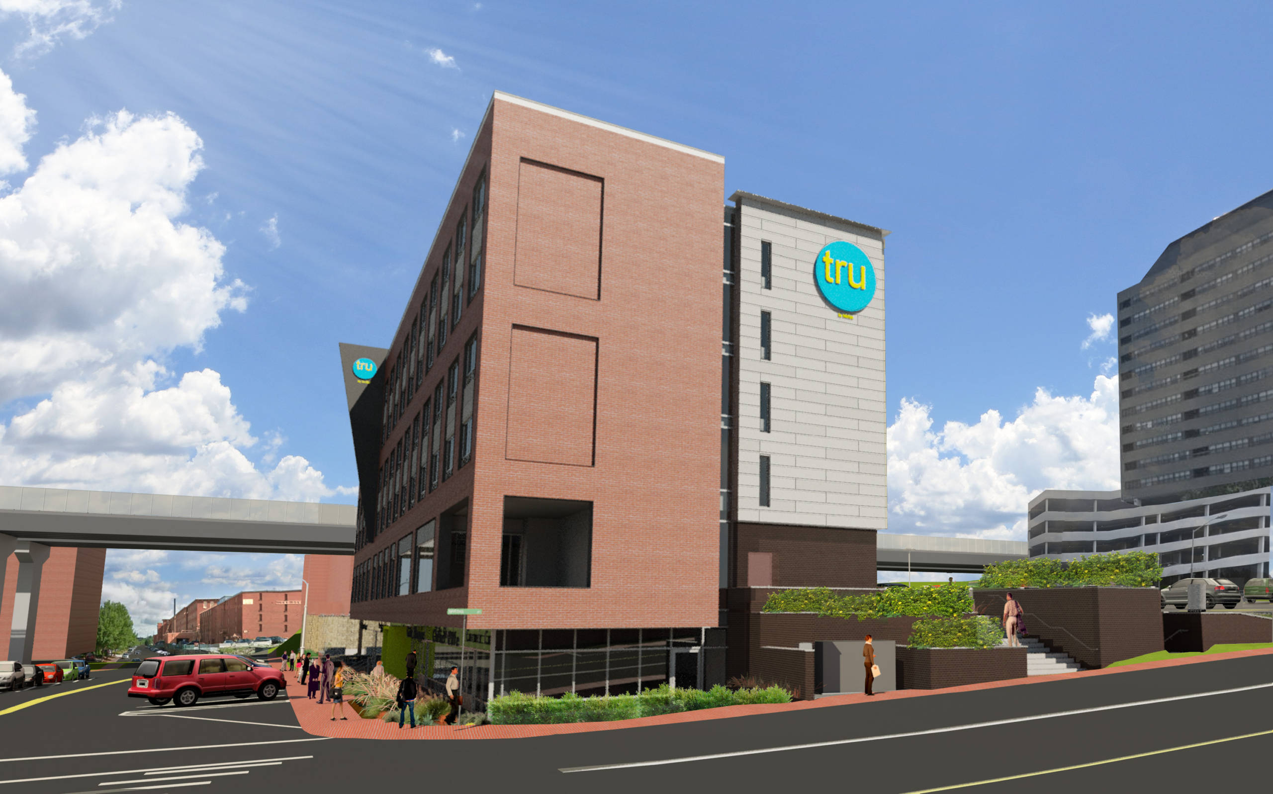 Tru by Hilton Manchester brings a unique vibe to the city’s hospitality industry and offerings. Launched in 2016, Hiltonโs Tru brand is targeted to a younger demographic, with lobby areas designed for meeting and socializing, community workspaces, and space for games. Tru broke ground in February 2019 with plans to open in the fall of 2020 and is already proving to be a desirable location for tenants.