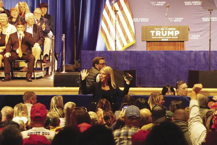 The rally opened with introductions made by Trumpโ€™s state campaign manager and former state GOP Chair Steve Stepanek, current GOP Vice Chair Ryan Terrell and former U.S. Sen. Bob Smith. Karoline Leavitt, the unsuccessful GOP nominee for New Hampshireโ€™s first congressional district seat in 2022 and a former Trump staffer, sat in the front row and received several callouts from her former boss during his remarks. The appearance in Wolfeboro Monday was one of a few Trump has made in the northern half of the state in this campaign.