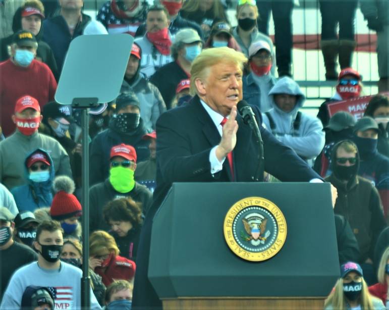 Trump also revisited some topics he discussed in August such as energy prices, restarting Big Ten football and China as well as some new developments such as the recognition of Israel by several Muslim-majority countries and potentially aiming to make peace in Armenia, drawing cheers from the numerous people with Armenian flags in the crowd.