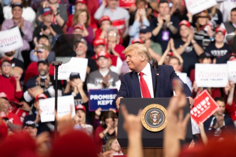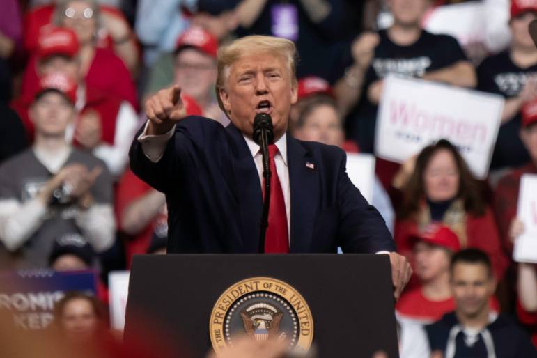 He credited Pelosi and the impeachment trial for his increasing poll numbers. “Thank you, Nancy,” he said to the crowd’s cheers.