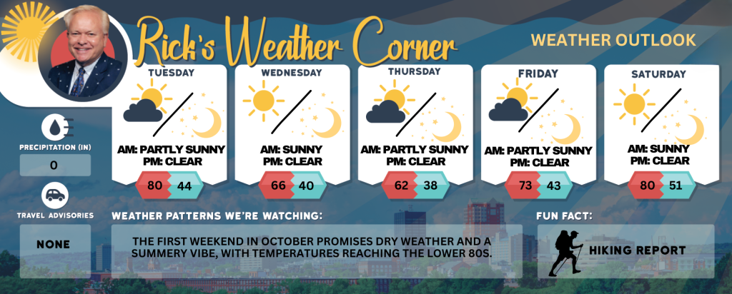 The first weekend in October promises dry weather and a summery vibe, with temperatures reaching the lower 80s.
