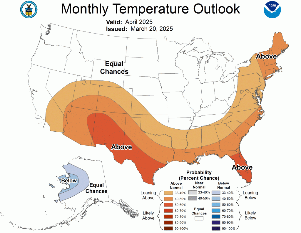 The outlook for April temperatures likely above normal.